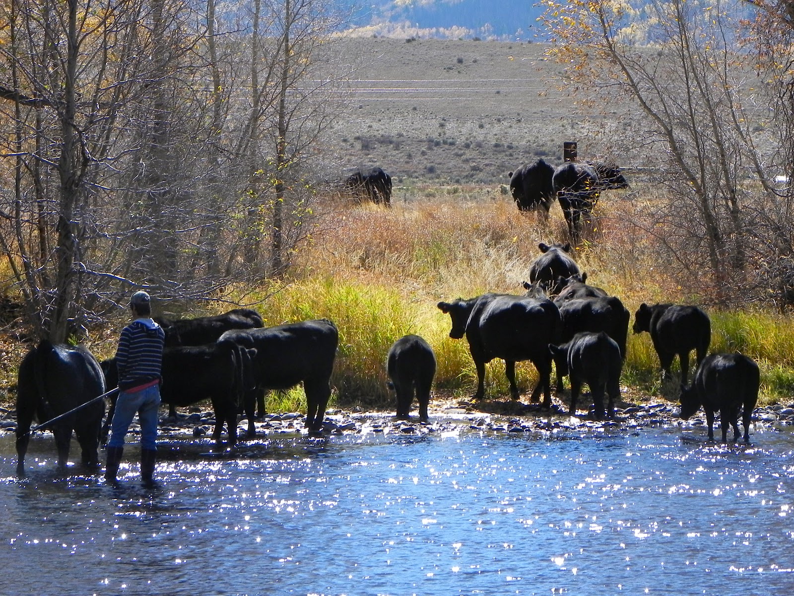 Really, when the lasts guests leave for year, we still have a lot that needs done around here. We remodel cabins. We clean. We clean some more. We fix that and we move this here and that over there. We feed the chickens, the ducks, the goat, and the rabbits. And, just like any ranch, the day to day work of keeping large livestock requires more than a keyboard and mouse. Our two big livestock groups around here, the horses and the cows, seem to keep us real busy.