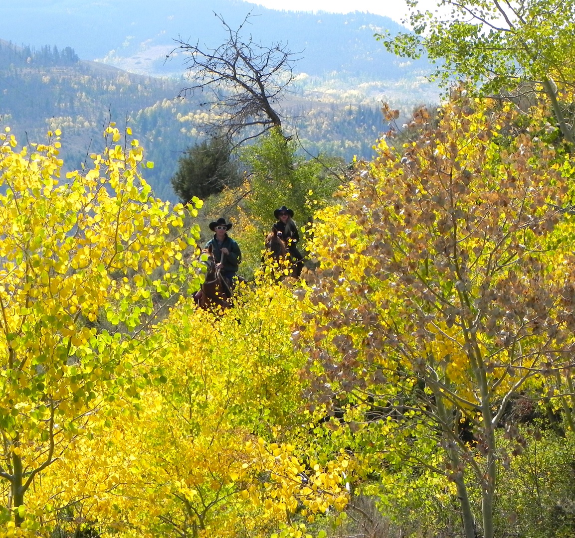 We had the last of our guests here this year during one of our Adult-Only weeks. They enjoyed fall colors on their rides as the aspen trees are alight with golds, reds, and oranges.