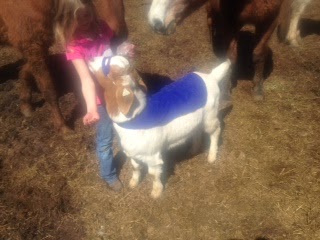 Usually, we buy baby goats in the spring, keep them for the petting zoo during the summer and sell them in the fall. But these particular goats and their extremely personable demeanor have allowed them to continue residence through the winter. They’ve made a place in our hearts and, specifically, in Peyton’s heart. Peyton actually speaks goat–really clear, perfect goat. She can call them in a loud Maa-Maa-MAAAAA and they come running to her. They follow her around the ranch like she is their leader, their friend, their human-goat liaison.